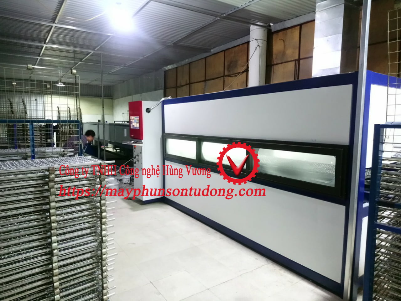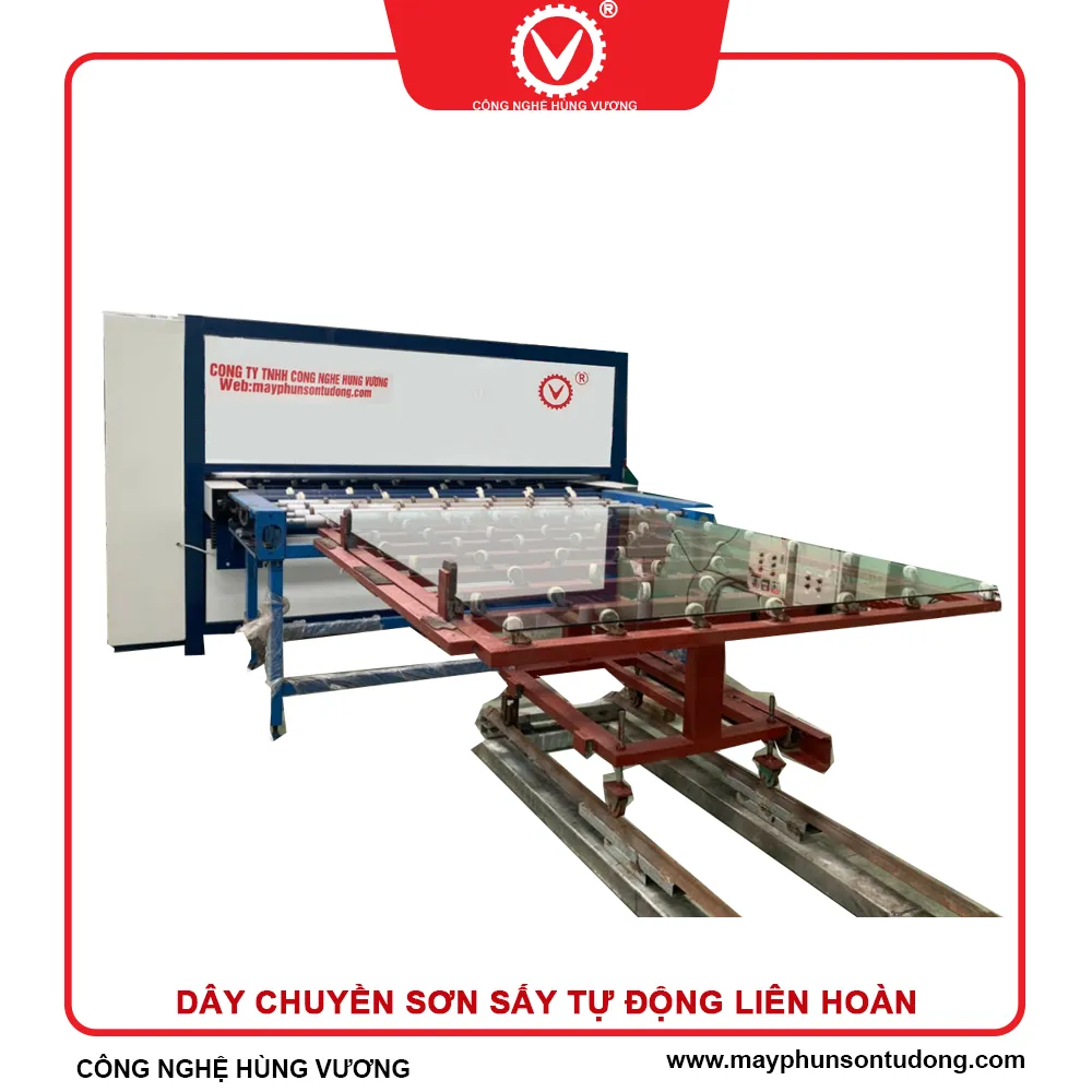 Công ty máy phun sơn tự động Công Nghệ Hùng Vương chuyên sản xuất, chế tạo các thiết bị máy móc tự động như dây chuyền sơn sấy tự động liên hoàn cho các ngành sản xuất có hạng mục sơn bề mặt sản phẩm như đồ gỗ, điện tử, ô tô,… đem lại năng suất, sản lượng, chất lượng sản phẩm vượt trội.